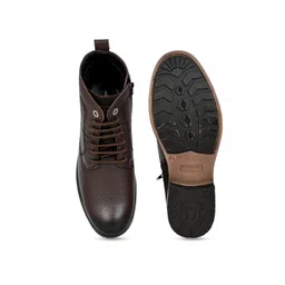 Allen Cooper Men Textured Leather Mid-Top Regular Boots