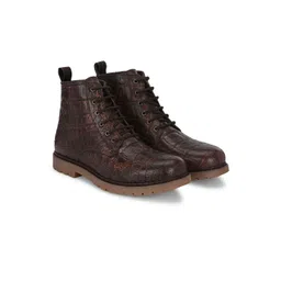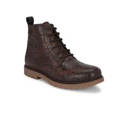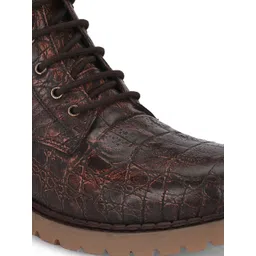 CARLO ROMANO Men Crocodile Textured Genuine Leather Platform Regular Boots