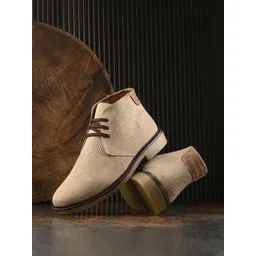 CARLO ROMANO Men Striped Leather Mid-Top Boots