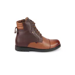 FAUSTO Men Textured Leather High Top Lace-Up Boots