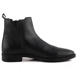 Men's Black Leather Chelsea Boots Side-Zip Extra Cushion Inner Sole