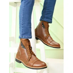 Men’s Lace-Up Ankle Boots with Cap Toe and Contrast Sole | Casual & Work Boots Boots For Men