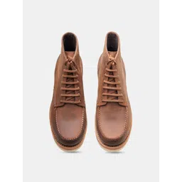 KOZASKO Men Goodyear Welted Brown Oiled Leather Moctoe Boot