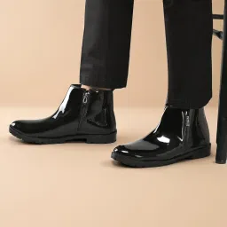 amazon.inluxezaMen’s Glossy Chelsea Boots | Patent Leather Slip-On Ankle Boots with Rugged Sole | Stylish Waterproof Formal & Casual Footwear ₹999