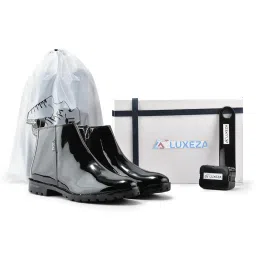amazon.inluxezaMen’s Black Patent Chelsea Boots – Stylish Slip-On Formal Boot with TPR Sole for Outdoor & Casual Wear Complimentary Shoe Bag Shoe Horn & Shine Kit ₹899