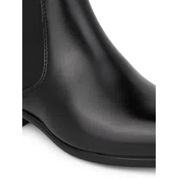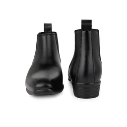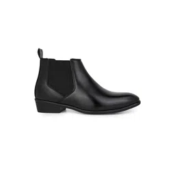 Roadster Men Black Mid Top Square Toe Synthetic Slip On Chelsea Boots