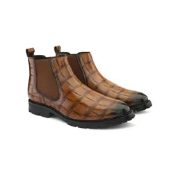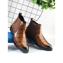Roadster Men Textured Round Toe PU Chelsea Boots
