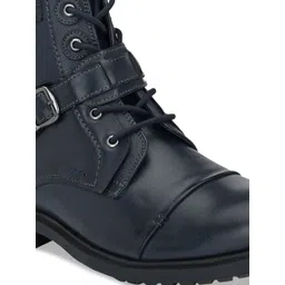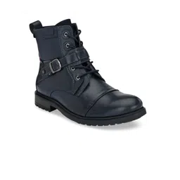 San Frissco Men Navy Blue High-Top Flat Boots Casual Shoes