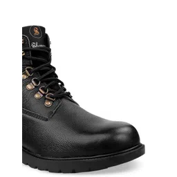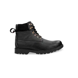 SHENCES Men Black Mid Top Leather Flat Boots