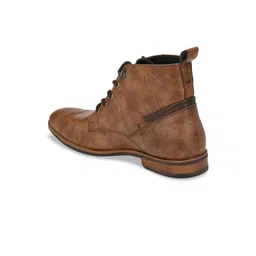SHENCES Men Tan Brown Solid Synthetic Leather Mid-Top Flat Boots