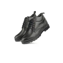 SHOZANIA Men Mid Top Textured Leather Regular Boots