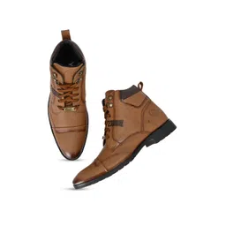 Vellinto BURNOX Men Round Toe Mid-Top Lace-Ups Biker Boots