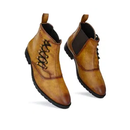 Vellinto Men Bikers Textured Mid-Top Chelsea Boots
