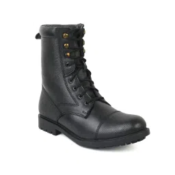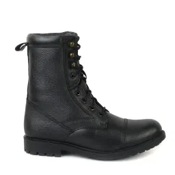 AR-1 Genuine Black Full Leather Military Men's Combat Boots -High Ankle - High Top Lace