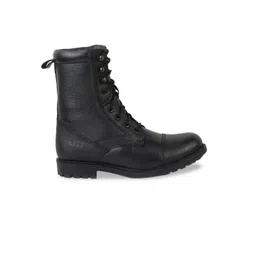 XHUGOY Men Black Textured Leather Flat Boots