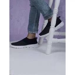 TPENT Men Navy Blue Mesh Running Non-Marking Shoes