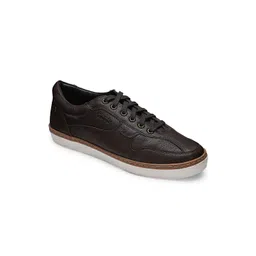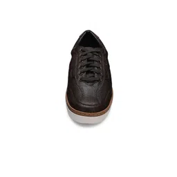 EZOK Men Brown Textured Leather Sneakers