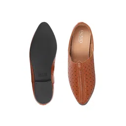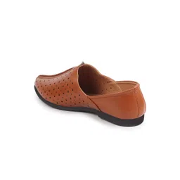 FAUSTO Men Tan Perforations PU Slip-On Sneakers