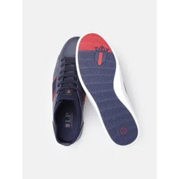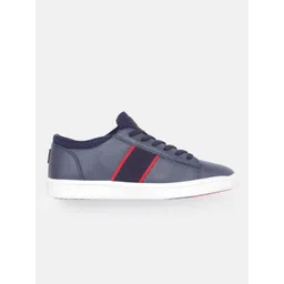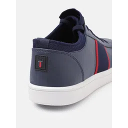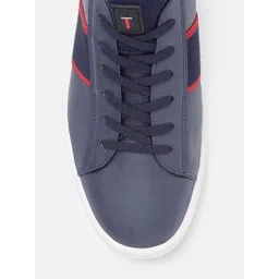 Louis Philippe Sport Men Navy Blue & Red Solid Sneakers with Striped Detail