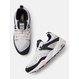 Puma Unisex White & Navy Blue Textured Blaze Of Glory Premium Regular Sneakers