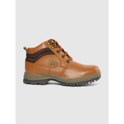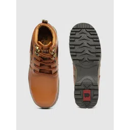 Red Chief Men Tan Brown Textured Leather Mid-Top Sneakers