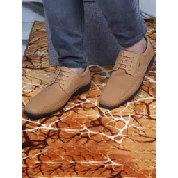 Red Chief Men Tan Textured Leather Sneakers