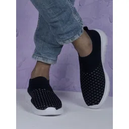 TPENT Men Navy Blue Woven Design Slip-On Sneakers