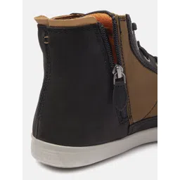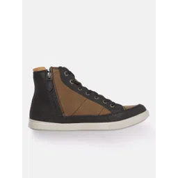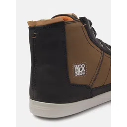 Woodland Men Mid-Top Colourblocked Leather Sneakers with Lace-Up Detail