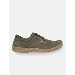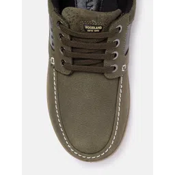 Woodland Men Olive Green Solid Leather Sneakers