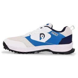 Force 2 Rubber Stud Cricket Shoes – White/Navy Blue | Lightweight All-Round Cricket Footwear with Superior Grip, Comfort, and Durability for Practice & Matches