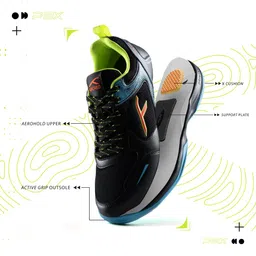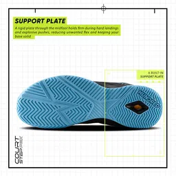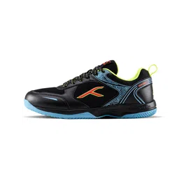 Court Step PBX Unisex Non-Marking Court Shoes | Badminton, Pickleball, Table Tennis & Other Indoor Sports | Lightweight, Cushioned Grip (Black/Lime/Orange/Blue ; UK 9)