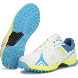 ProGrip All-Rounder Cricket Shoes Durable & Comfortable Rubber Spikes for Batting, Bowling & Fielding White/Parrot_6 UK/IND
