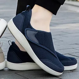 FABLOFT Men's Walking Shoes Low Top Cushioning Adjustable Strap Wide Round Toe Flats 40 Dark Blue|1 Pair of Men's Walking Shoes|Athletic| Men's Shoes |Clothing, Shoes & Accessories