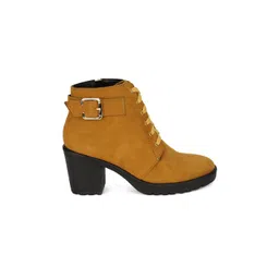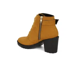 Bruno Manetti Camel Brown Suede Block Heeled Boots with Buckles