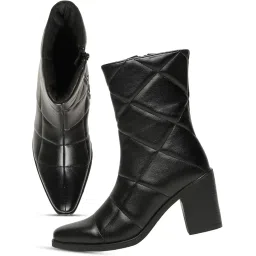 Women’s Classic Sleek Slip-On Chic Mid-Calf side zipper,stylish quilted design and pointed toe for a modern edge. The comfortable block heel offers stability and elegance boots.