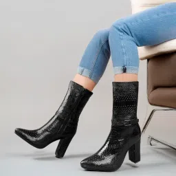 amazon.inbxxyWomen 9 Cm Block Heel Height Buckle Detail Snakeskin Boots And Casual Mid-Calf Dressy Boots ₹2,499