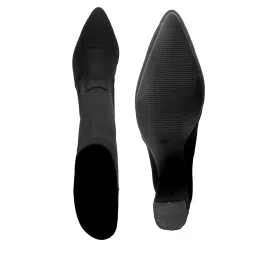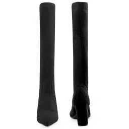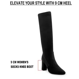 Women's Faux Leather Material Black Casual Formal Slipon Sock Fit Knee-Length Boots With 9 Cm Block High Heel Height