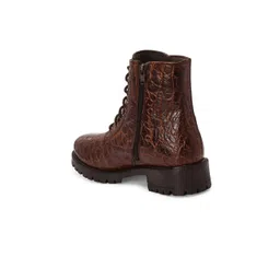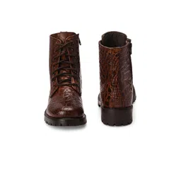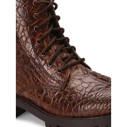 CARLO ROMANO Brown Crocodile Printed Leather Lace-Up Boot