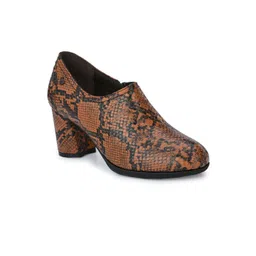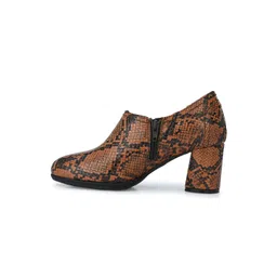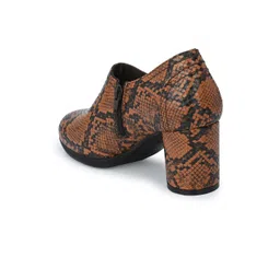 Delize Women Brown Snake Printed Heeled Boots