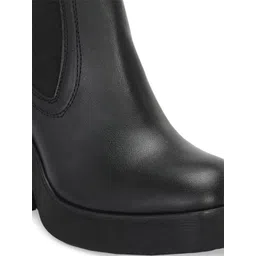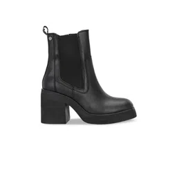 Delize Women Square Toe Mid Top Leather Platform Heel Regular Boots