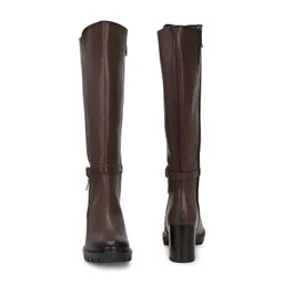 Delize Women Vegan Leather Metal Logo Detail High Block-Heel Slouchy Boots