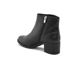 DressBerry Women Black Textured Heeled Mid-Top Regular Boots