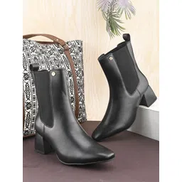 EL PASO Women Black Faux Leather Casual Chelsea Boots Boots For Women