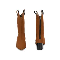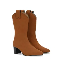 El Paso Women Pointed Toe Block Heel Mid Calf Boots