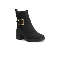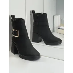 ELLE Women Buckle Detail Heeled Mid-Top Chunky Boots