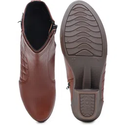 Women Synthetic Leather Tan Round Toe Boots Boots For Women