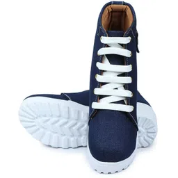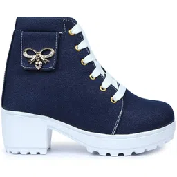 casual Blue Denim comfortable buckle ornament lace up boots for women Boots For Women
