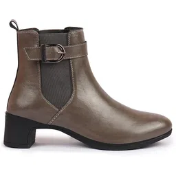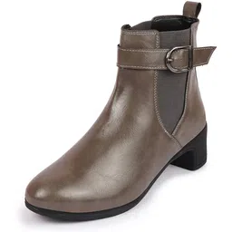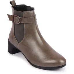 Flared Heel High Ankle Classic Winter Buckle Strap Chelsea Boots For Women