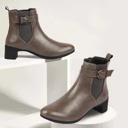 Flared Heel High Ankle Classic Winter Buckle Strap Chelsea Boots For Women