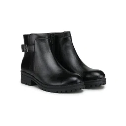 women's Black boot with zipper closure and buckle